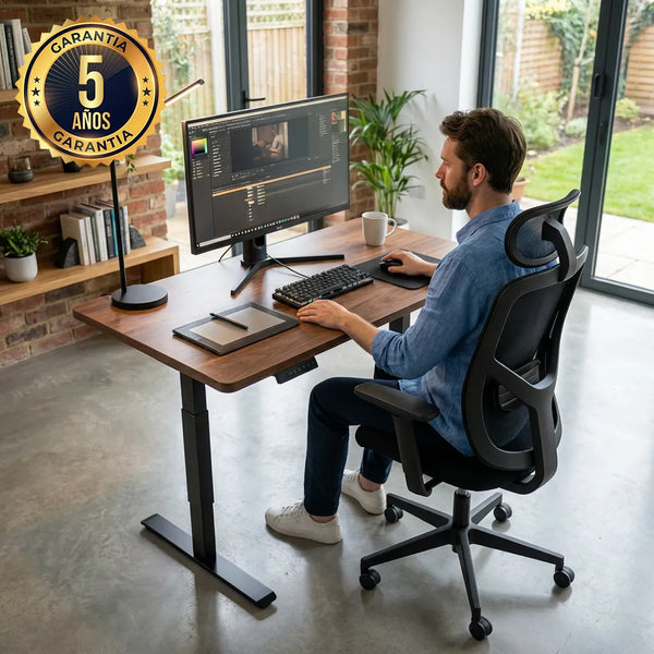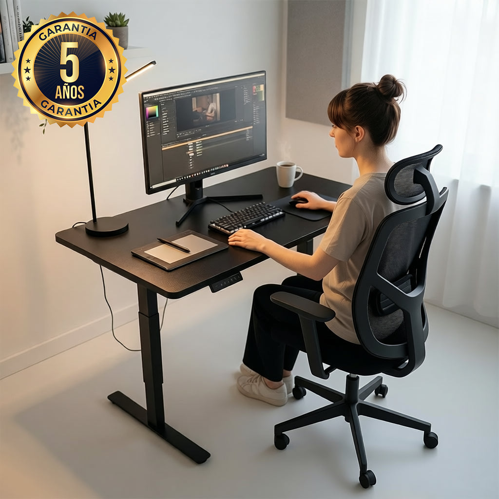 Sí. Nuestros escritorios y sillas están diseñados para adaptarse a tu cuerpo, reducir la tensión lumbar y cervical, y ayudarte a mantener el enfoque por más tiempo. Alternar entre estar sentado y de pie, junto con una postura correcta, reduce el cansancio lumbar y aumenta tu rendimiento real en el día a día.