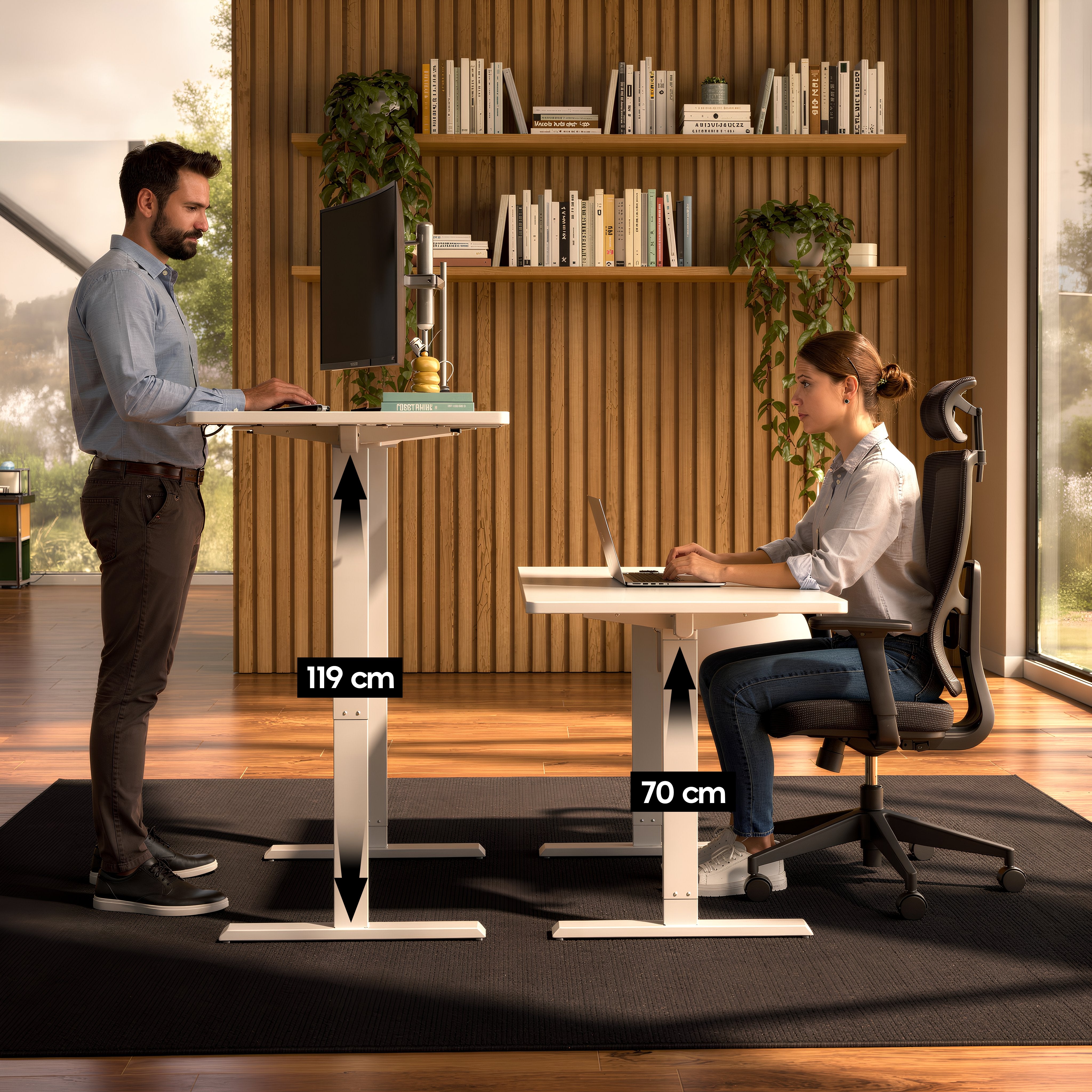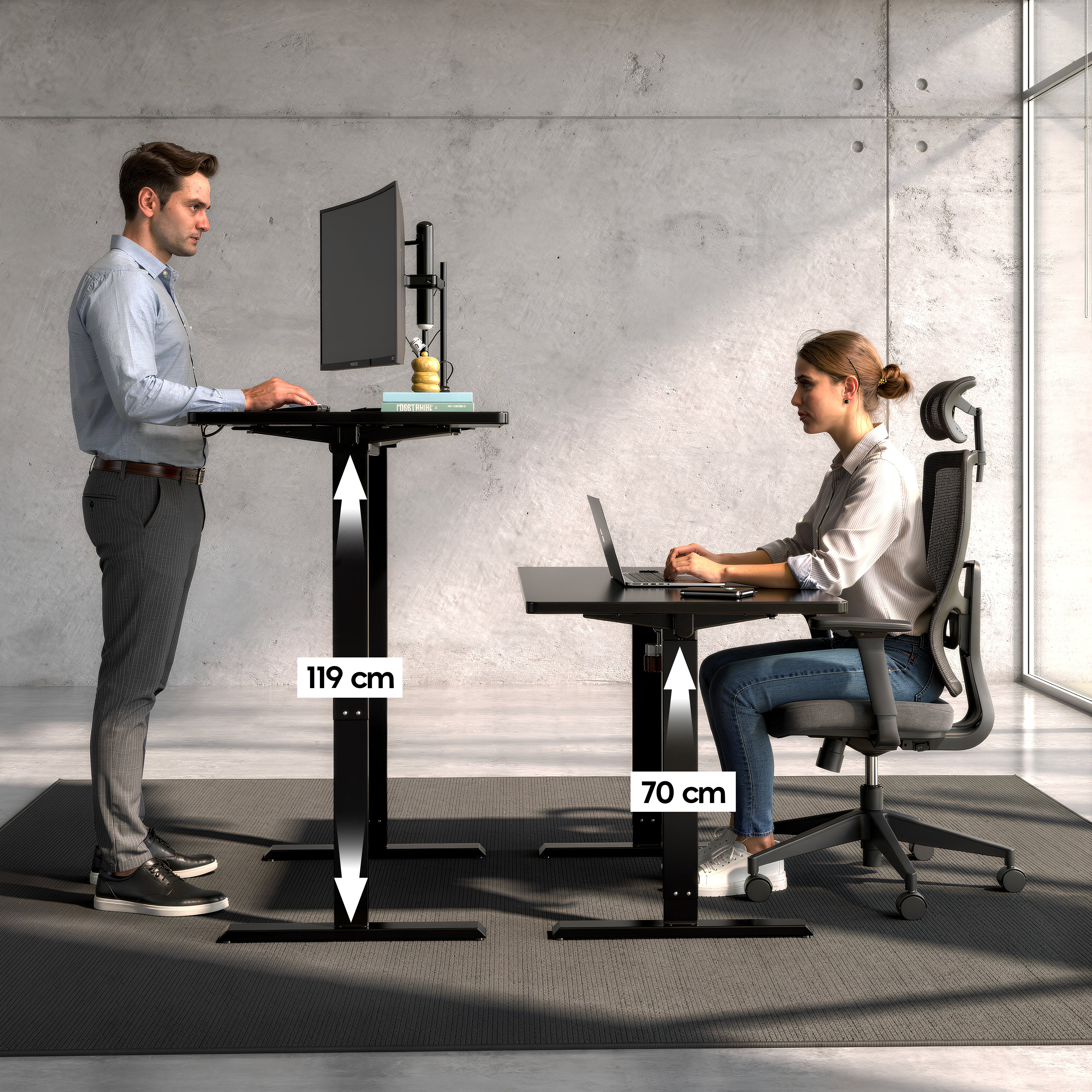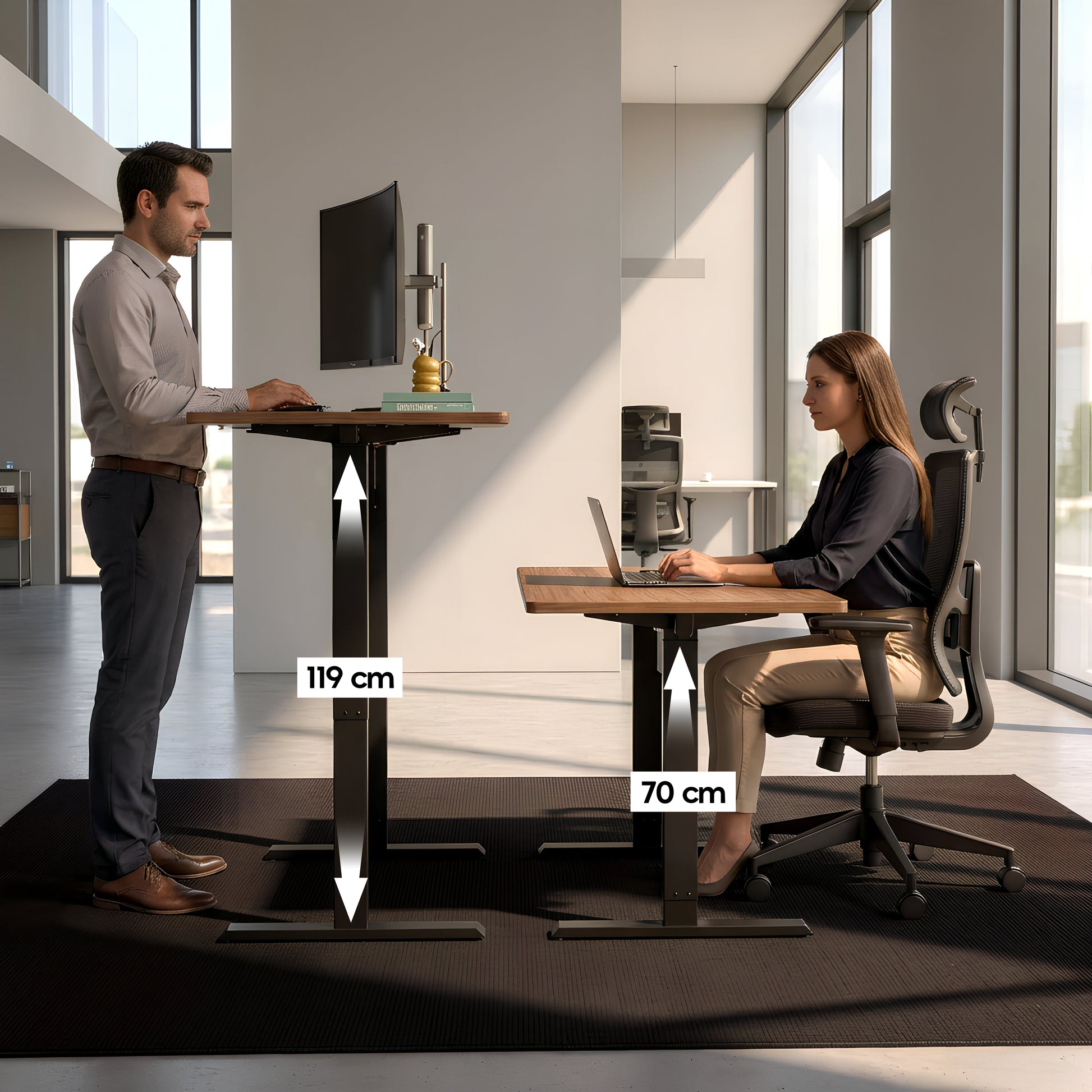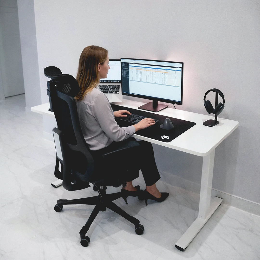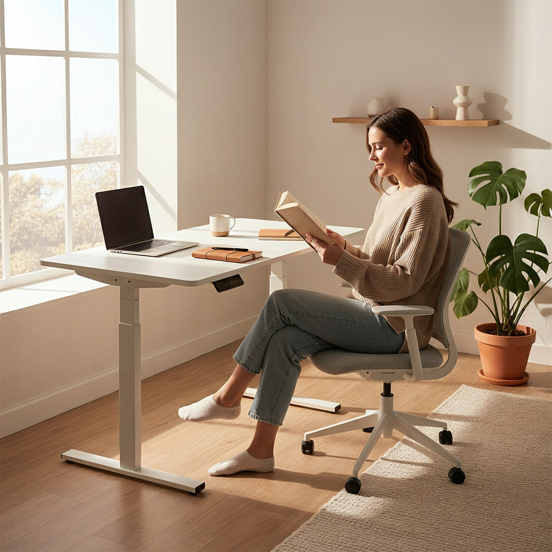 Cambio de altura silencioso y fluido, sin interrumpir tu concentración ni tus videollamadas.